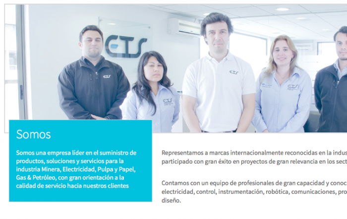 ETS entrega servicios tecnológicos, siendo líder en el suministro de productos, soluciones y servicios para la industria Minera, Electricidad, Pulpa y Papel, Gas y Petróleo.