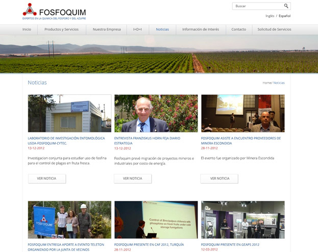 Fosfoquim, empresa química de gran prestigio en la industria chilena nos solicito hacer un nuevo sitio web con un requerimiento claro, usabilidad y diseño que representara a la empresa. Sitio autoadministrable.