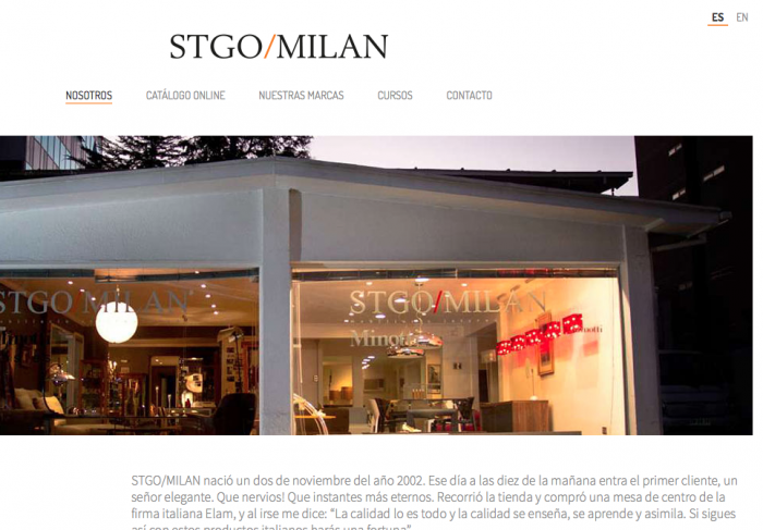 Nos pidieron un sitio limpio y claro, que reflejara la línea de productos que Stgo/Milan trae en forma exclusiva a su tienda. Sitio autoadministrable.