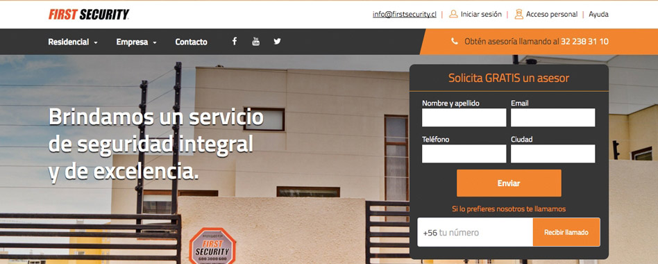 Rediseñamos completamente el sitio web en base a los nuevos estandares y tecnologías. First Security la empresa líder en seguridad en la V Región y referente en el mercado.