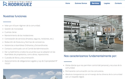 Sitio diseñado y pensado para la administración de comunidades de edificios. Moldeable desarrollo a medida un ERP para Administraciones Rodriguez.