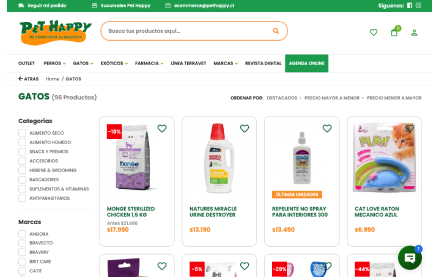 Reconocida tienda de accesorios y alimentos para mascotas. Necesitaban un eCommerce profesional y con un alto desarrollo de programación para aspectos propios de su ERP.