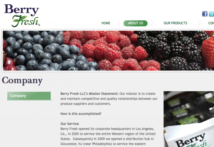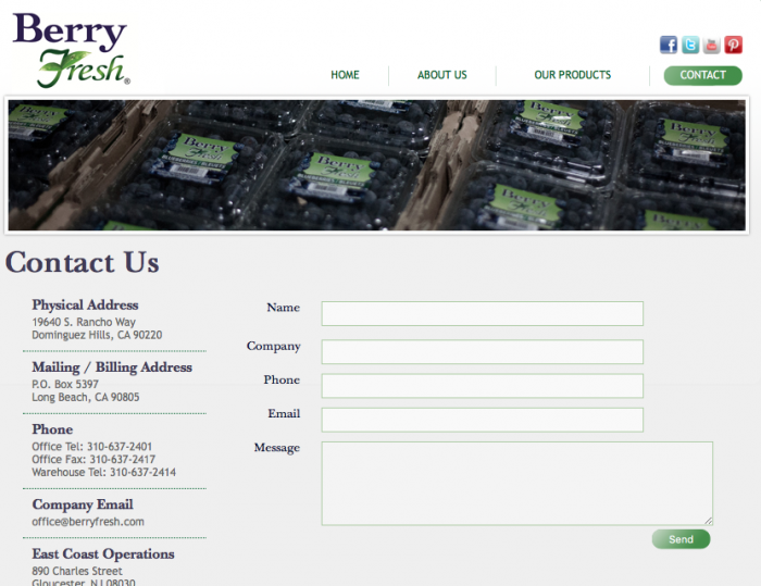 Sitio corporativo de la exportadora Berry Fresh. Sitio simple y de fácil navegación.