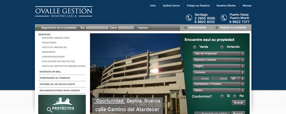 Completo sitio web de corretaje de propiedades, donde destaca la administración de cartera de propiedades con línea directa con los dueños de las propiedades informando el estado de la propiedad.
